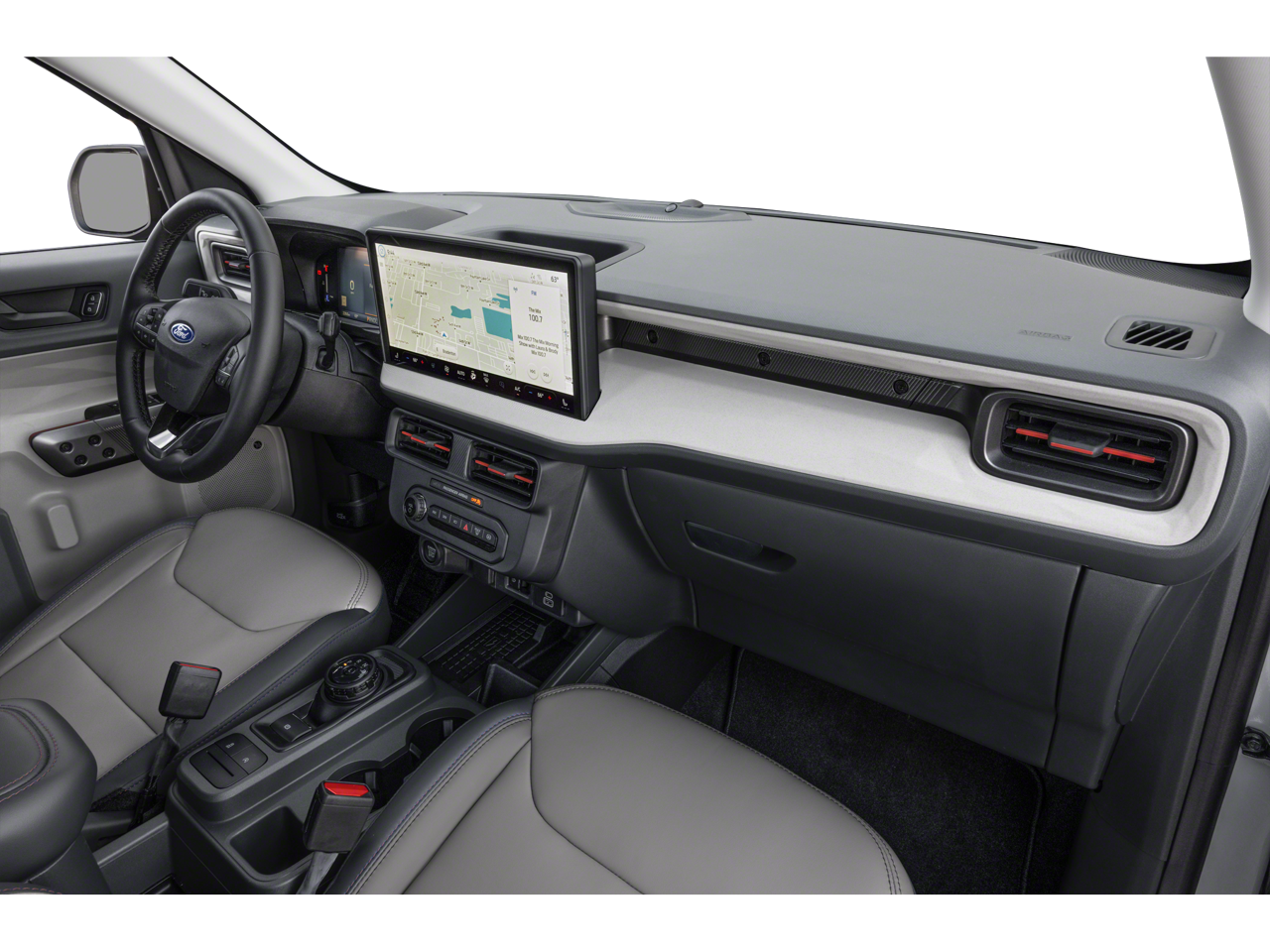 Beneath the hood, the Maverick Lariat's EcoBoost 2.0L I4 GTDi DOHC Turbocharged VCT engine delivers a thrilling and efficient driving experience. Paired with an 8-speed automatic transmission and all-wheel drive, this powertrain provides the perfect balance of power and fuel efficiency, delivering an EPA-estimated 22 mpg in the city and 30 mpg on the highway.