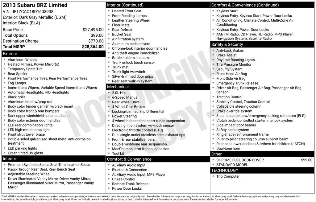 - Vehicle Name: Subaru BRZ