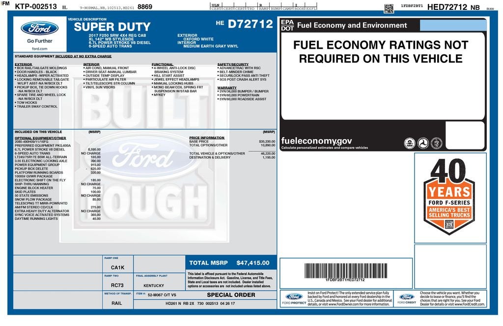 - Vehicle Name: Ford Super Duty F-250 SRW