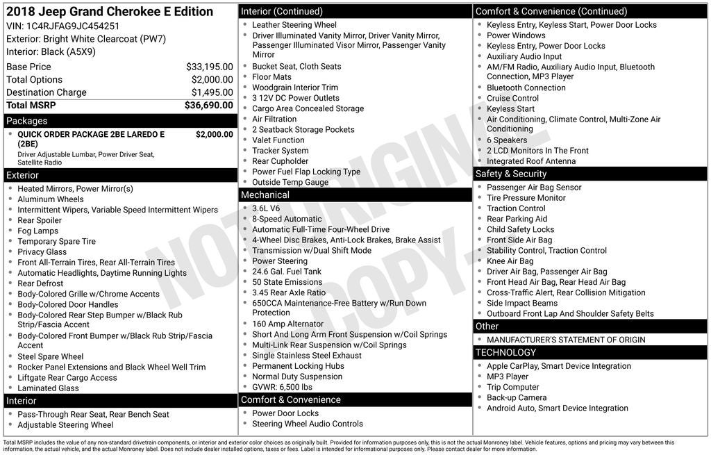 At our dealership, we're dedicated to providing our customers with an exceptional purchasing experience. We invite you to visit us and explore this remarkable 2018 Jeep Grand Cherokee Laredo E in person. Let us demonstrate how this SUV can elevate your driving experience and exceed your expectations. We're confident that once you experience the Grand Cherokee Laredo E, you'll be eager to make it your own.