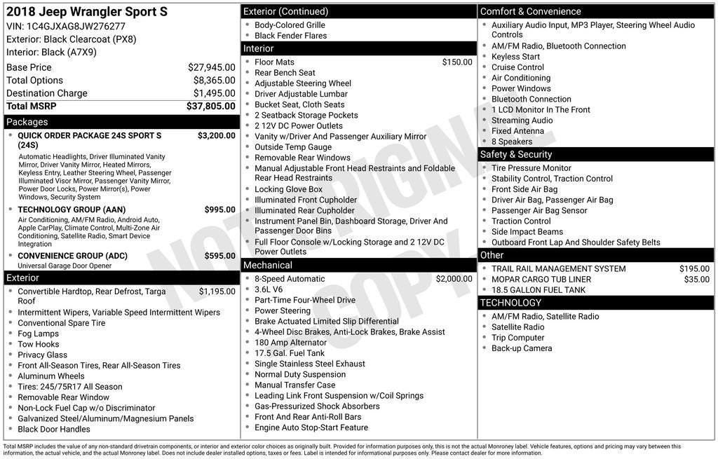 2018 2018 Jeep Wrangler Sport S Sport S Black Clearcoat Clean CARFAX.