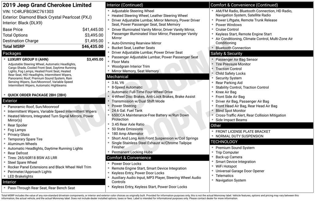 2019 Jeep Grand Cherokee Limited Diamond Black Crystal Pearlcoat