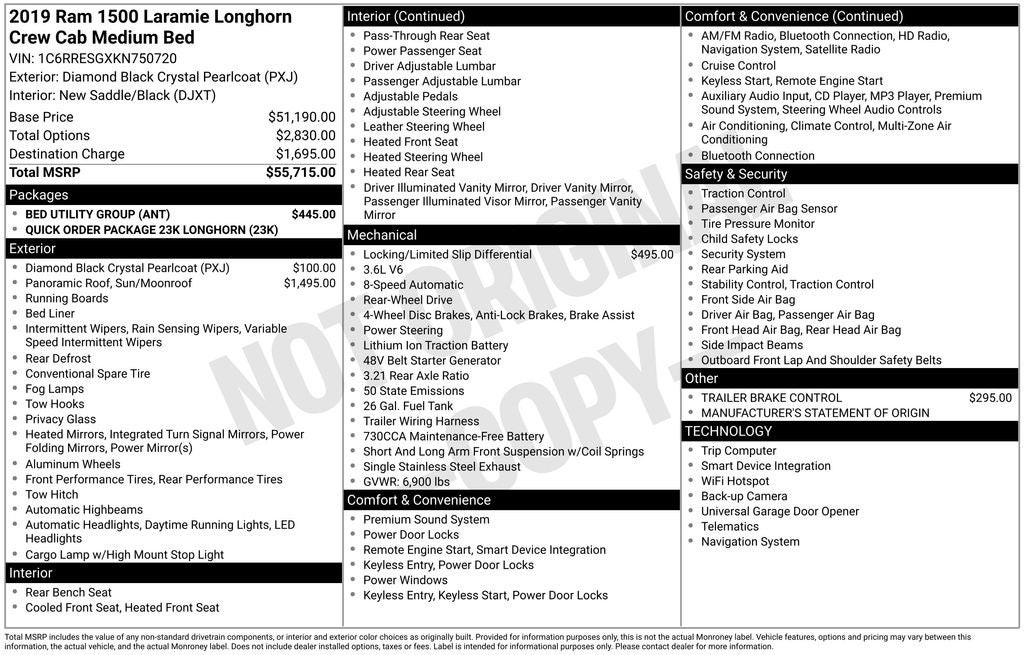 This 2019 Ram 1500 Laramie Longhorn is a true standout in the full-size truck segment. With its impressive capabilities, premium features, and refined styling, it's the perfect choice for those who demand the best. Visit our showroom today to experience this exceptional vehicle in person and discover how it can elevate your driving experience.