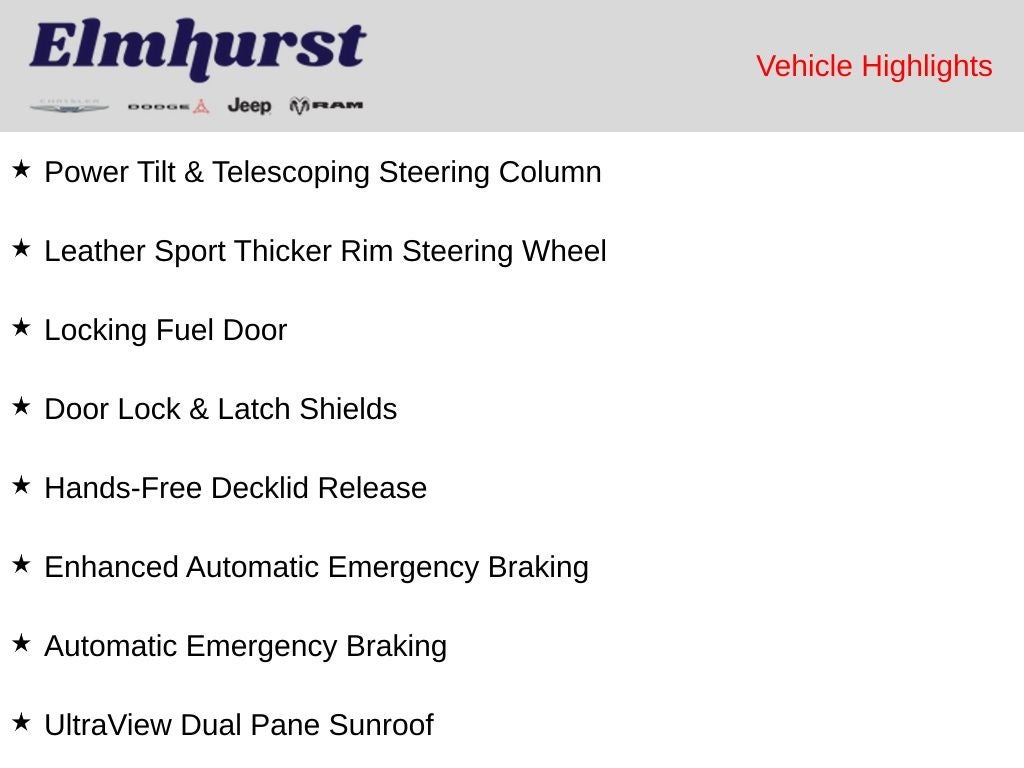 Proudly serving Elmhurst for over 103 years, Elmhurst Chrysler Dodge Jeep Ram (formerly Larry Roesch CDJR) combines trusted local history with a modern, velocity-based pricing model. We price below market to turn inventory monthly — no games, no inflated pricing. Same great team, better experience. We also offer fleet & commercial sales, custom builds, and nationwide shipping on new and pre-owned vehicles.