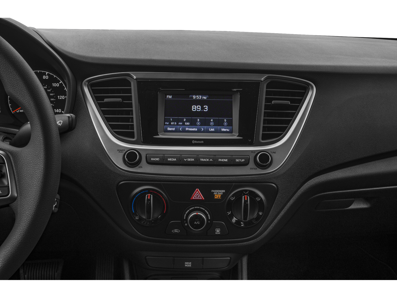 - Radio: Audio AM/FM -inc: 4 speakers (2 front-door-mounted speakers, 2 rear speakers located lower panel), 5" color touchscreen, Apple Siri Eyes-Free interface, digital clock, smartphone/USB and MP3 auxiliary input jacks, steering-wheel-mounted audio controls and Bluetooth® hands-free phone system