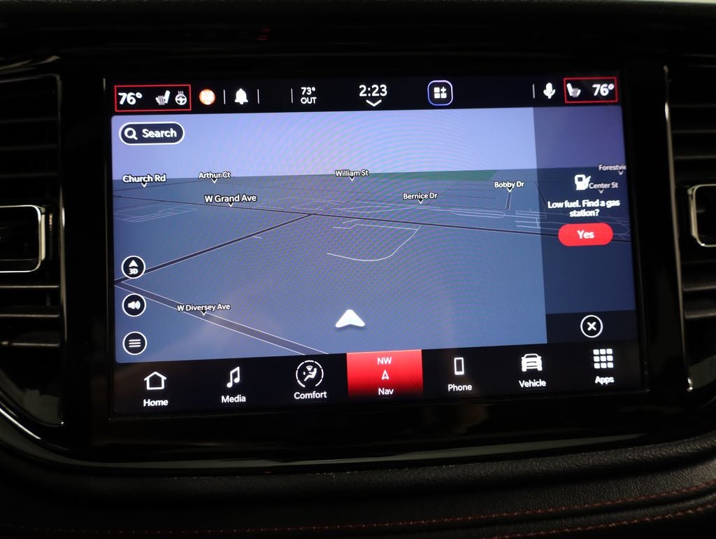 Step inside the Durango R/T and experience the epitome of comfort and convenience. Sink into the luxurious Leather Suede Bucket Seats, where heated front and rear seats provide a cozy ride, no matter the weather. The Uconnect 5 Nav system with a stunning 10.1 display keeps you connected and entertained, while the Trailer Tow Group IV ensures your towing needs are effortlessly met.
