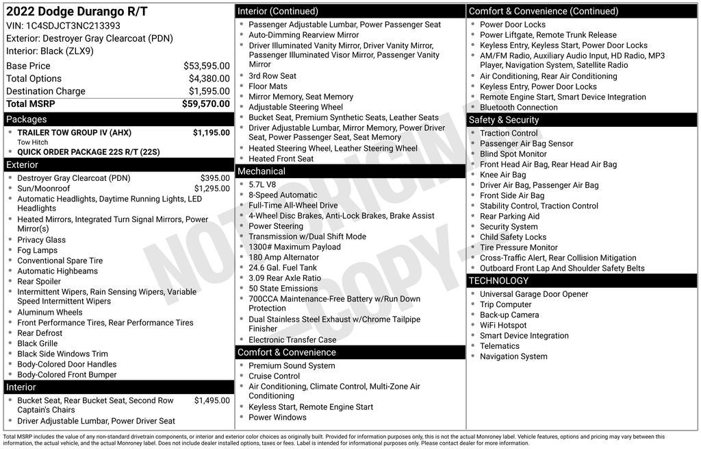 Experience the power and refinement of the 2022 Dodge Durango R/T. With its exceptional performance, advanced technology, and uncompromising style, this SUV is the perfect companion for your adventures. Contact us today to schedule a test drive and discover the true capabilities of this remarkable vehicle.