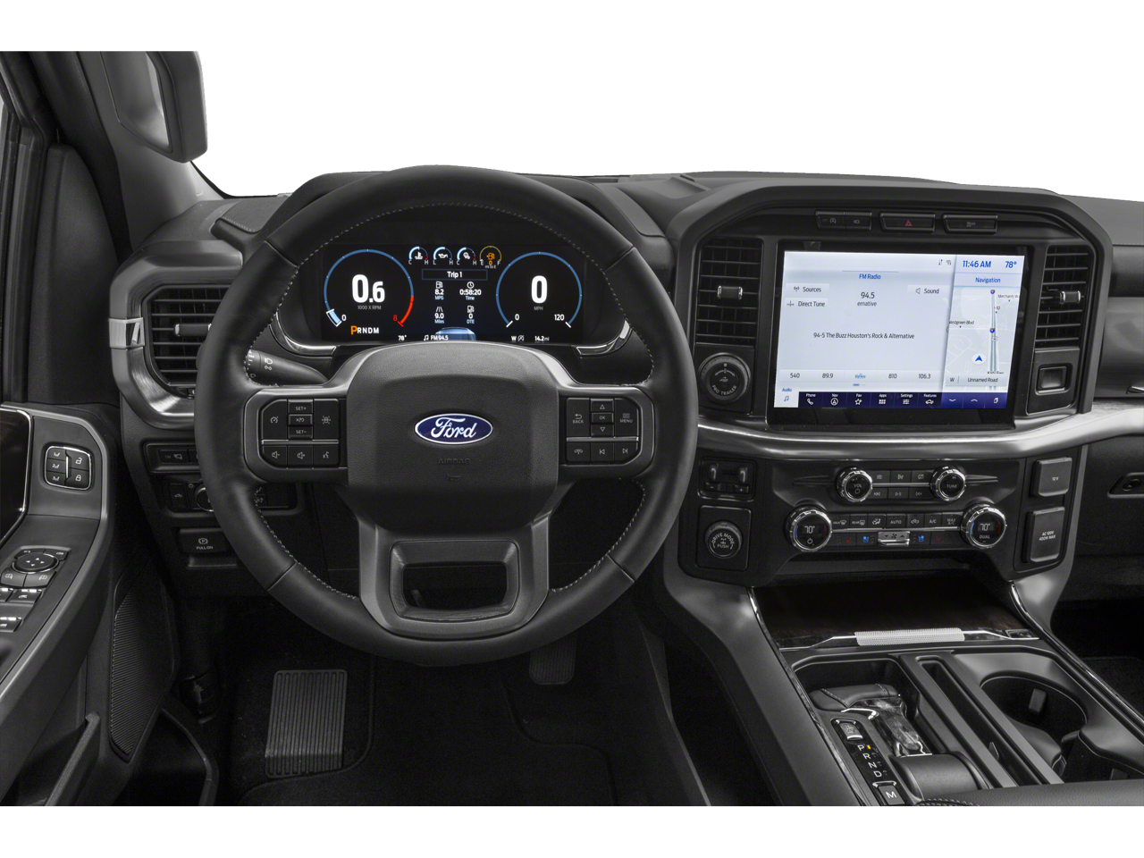 Comfort and style come together in the Lariat's leather-trimmed heated and ventilated front seats, heated steering wheel, and power-adjustable driver's seat with memory. The twin-panel moonroof and chrome exterior accents elevate the Lariat's premium appearance.
