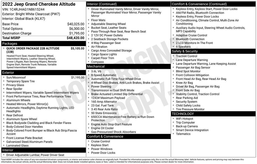 We invite you to experience the remarkable 2022 Jeep Grand Cherokee Altitude firsthand. Contact us today to schedule a test drive and discover how this exceptional SUV can enhance your daily commute and weekend adventures. We're confident that once you experience the power, comfort, and premium features of this Jeep, you'll be eager to make it your own.