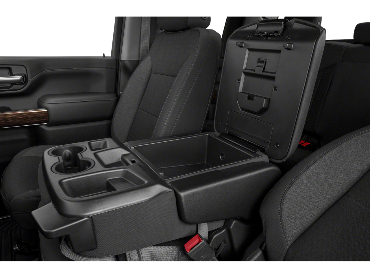 - Seats, front 40/20/40 split-bench with upper covered armrest storage with fixed lumbar (Standard on Crew Cab and Double Cab models only.)