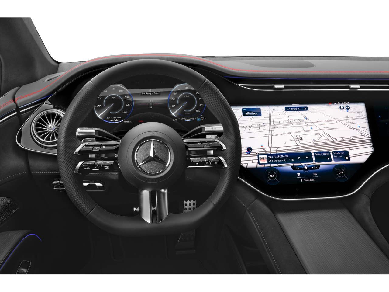 Step inside the EQS 580 and you'll be greeted by a stunning Burmester® 710W sound system, a panoramic moonroof, and a state-of-the-art MBUX infotainment system with navigation, Apple CarPlay, and Android Auto. The heated and ventilated front seats, heated steering wheel, and 4-zone climate control ensure that you and your passengers can enjoy a truly luxurious driving experience, no matter the weather.