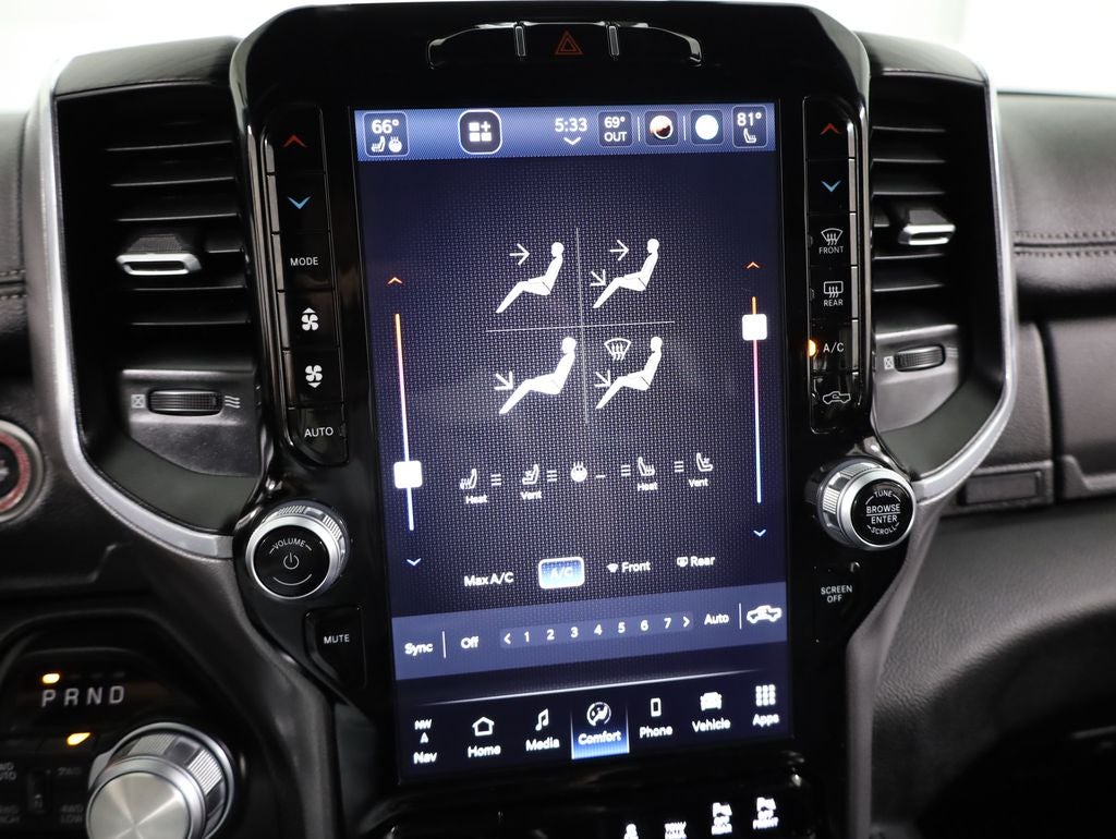 12 Touchscreen Display, 2nd Row In Floor Storage Bins, 4G LTE Wi-Fi Hot Spot, Apple CarPlay, Auto High Beam Headlamp Control, Black Interior Accents, Blind Spot & Cross Path Detection, Body Color Exterior Mirrors, Body Color Front Bumper, Body Color Premium Power Mirrors, Body Color Rear Bumper w/Step Pads, Connected Travel & Traffic Services, Connectivity - US/Canada, Disassociated Touchscreen Display, Electric Shift-On-Demand Transfer Case, Foam Bottle Insert (Door Trim Panel), For Details, Visit DriveUconnect.com, For More Info, Call 800-643-2112, Front Door Accent Lighting, Front LED Fog Lamps, Global Telematics Box Module (TBM), Google Android Auto, GPS Antenna Input, GPS Navigation, Grille Surround 3 Body Color Tex 2 Black, harman/kardon 19 Speaker Premium Sound, HD Radio, Integrated Center Stack Radio, Integrated Voice Command w/Bluetooth®, Laramie Level B Equipment Group, LED Reflector Headlamps, Navigation System, ParkSense Front/Rear Park Assist w/Stop, Quick Order Package 27H Laramie, Radio: Uconnect 5 Nav w/12.0 Display, Rain Sensitive Windshield Wipers, RAM Grille Badge - Chrome, Rear Door Accent Lighting, Rear Power Sliding Window, Rear Underseat Compartment Storage, Rear Window Defroster, Remote Tailgate Release, SiriusXM Radio Service, SiriusXM w/360L, Sport Appearance Package, Sport Decal, Sport Performance Hood, USB Host Flip, Wheels: 20 x 9 Premium Painted w/Inserts.
