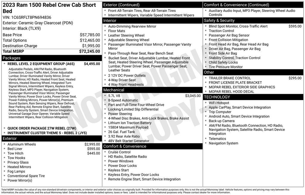 Whether you're tackling the great outdoors or navigating the city streets, this 2023 Ram 1500 Rebel is the ultimate companion. Experience the power, capability, and premium features that make this truck a standout in its class. We invite you to visit our showroom and take this remarkable Rebel for a test drive. Let us help you discover the perfect truck to elevate your driving experience.