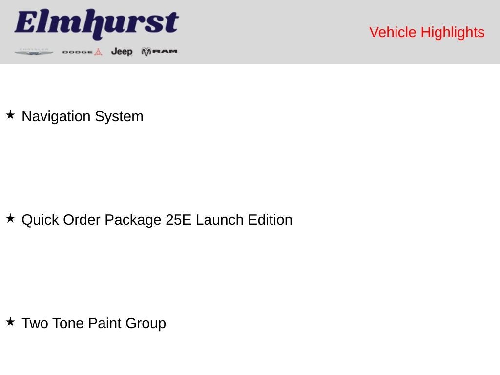 Proudly serving Elmhurst for over 103 years, Elmhurst Chrysler Dodge Jeep Ram (formerly Larry Roesch CDJR) combines trusted local history with a modern, velocity-based pricing model. We price below market to turn inventory monthly — no games, no inflated pricing. Same great team, better experience. We also offer fleet & commercial sales, custom builds, and nationwide shipping on new and pre-owned vehicles.