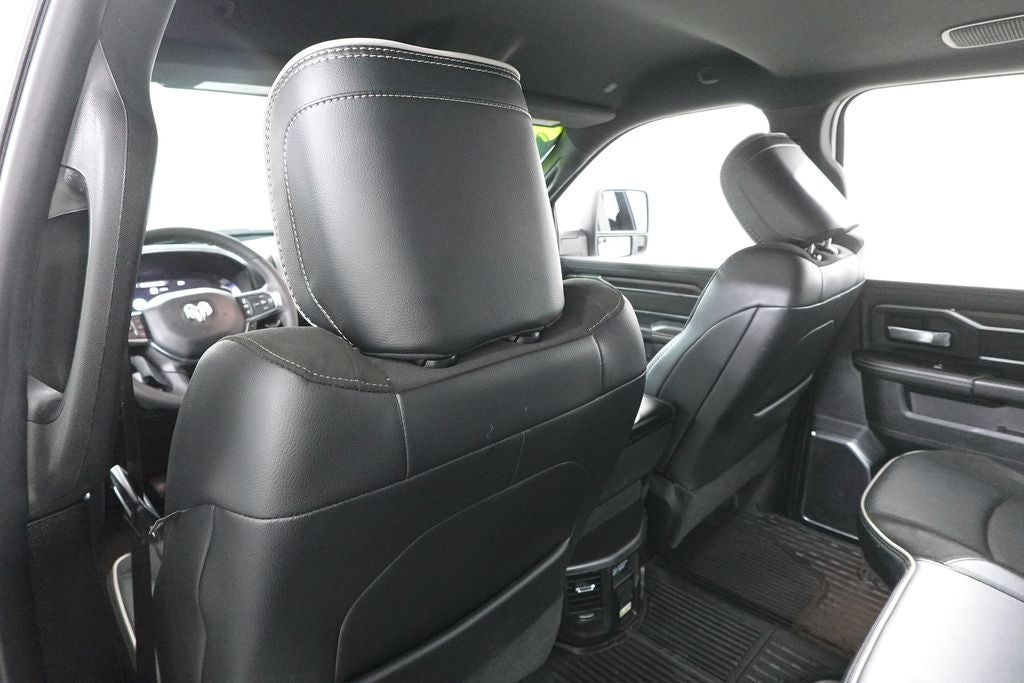 10 Speakers, 115V Auxiliary Rear Power Outlet, 2 Way Rear Headrest Seat, 2nd Row In Floor Storage Bins, 3.42 Axle Ratio, 4 Way Front Headrests, 4-Wheel Disc Brakes, 4G LTE Wi-Fi Hot Spot, 5th Wheel/Gooseneck Towing Prep Group, ABS brakes, Air Conditioning, Alexa Built-In, Alloy wheels, AM/FM radio: SiriusXM with 360L, Anti-Spin Differential Rear Axle, Apple CarPlay, Apple CarPlay/Android Auto, Auto Adjust In Reverse Exterior Mirrors, Auto Dim Exterior Mirror, Auto High Beam Headlamp Control, Auto Power-Folding Mirrors, Auto-Dimming Exterior Passenger Mirror, Auto-dimming Rear-View mirror, Automatic temperature control, Black Wheel Center Hub, Brake assist, Bumpers: body-color, Chrome Exterior Mirrors, Chrome Flat Wheel-to-Wheel Side Steps, Compass, Connected Travel & Traffic Services, Connectivity - US/Canada, Delay-off headlights, Disassociated Touchscreen Display, Driver door bin, Driver vanity mirror, Dual front impact airbags, Dual front side impact airbags, Electronic Stability Control, Emergency Vehicle Alert System (EVAS), Exterior Mirrors Courtesy Lamps, Exterior Mirrors w/Heating Element, Exterior Mirrors w/Memory, Exterior Mirrors w/Supplemental Signals, Foam Bottle Insert (Door Trim Panel), Folding Flat Load Floor Storage, Forward & Reverse Utility Lights, Front anti-roll bar, Front Center Armrest w/Storage, Front dual zone A/C, Front fog lights, Front License Plate Bracket, Front reading lights, Front Seat Back Map Pockets, Fully automatic headlights, Garage door transmitter, Global Telematics Box Module (TBM), Google Android Auto, GPS Antenna Input, HD Radio, Heated door mirrors, Heated Front Seats, Heated front seats, Heated Steering Wheel, Heated steering wheel, High Back Seats, Illuminated entry, Integrated Voice Command w/Bluetooth®, Laramie Level 1 Equipment Group, Leather Trim 40/20/40 Bench Seat, Low tire pressure warning, Manufacturer's Statement of Origin, Mirror Running Lights, Navigation System, Occupant sensing airbag, Outside temperature display, Overhead airbag, Overhead console, Panic alarm, ParkView Rear Back-Up Camera, Passenger door bin, Passenger vanity mirror, Power 2-Way Driver Lumbar Adjust, Power 2-Way Passenger Lumbar Adjust, Power Adjust 8-Way Driver Seat, Power Adjust 8-Way Front Passenger Seat, Power Adjust Mirrors, Power Adjustable Convex Aux Mirrors, Power Adjustable Pedals w/Memory, Power door mirrors, Power driver seat, Power Heated Fold Telescopic Mirrors w/Memory, Power passenger seat, Power steering, Power Telescoping Mirrors, Power windows, Quick Order Package 24H Laramie, Radio data system, Radio: Uconnect 5 Nav w/12.0 Display, Rain Sensitive Windshield Wipers, Rear 60/40 Folding Seat, Rear anti-roll bar, Rear reading lights, Rear seat center armrest, Rear step bumper, Rear window defroster, Remote keyless entry, Remote Tailgate Release, Security system, Selectable Tire Fill Alert, SiriusXM Radio Service, Speed control, Split folding rear seat, Steering wheel mounted audio controls, Tachometer, Tilt steering wheel, Traction control, Trip computer, Turn signal indicator mirrors, Variably intermittent wipers, Voltmeter, Wheels: 18 x 8.0 Diam Cut Alum w/Blk Pt Pock.